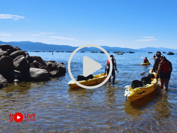 "We rented a tandem kayak from Tahoe Adventure Company. The rental was quick and easy. You walk up and scan the QR code on your phone, fill out the waiver on your phone and send it in. They have large and small dry bags for rent for $5. We took the large one, which fit our towels, our picnic lunch, and a number of other things that we didn't want to get wet. The kayaking itself was great! After leaving, we headed left approx. an hour to the rocky area, which was nice to explore. We found a rock near enough to shore that we could easily get out of the kayak to swim and then sit on the rock to eat lunch before heading back. Overall trip was 3 hours and the scenery was beautiful (in spite of the haze due to the wildfires around CA). We would definitely do this again." -Katie G.